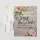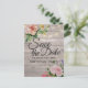 Moderna Fiesta de Cumpleaños Guardar las Plantillas de Postales de Invitación a la Fecha - Elegante Script con Flores Rosa Rosa y Luces de Cadena sobre fondo de Madera Rústica. Un diseño perfecto para tu gran día. ¡Todo el estilo de texto, colores, tamaños se pueden modificar para adaptarlo a sus necesidades!