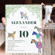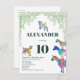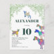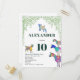 Dejemos que el fiesta se divierta empezando con esta linda invitación a la fiesta de cumpleaños número 10 con la temática de la cabra, con cabras y cabras paradas en cabras. Coloridas acuarelas de la granja de animales con cabras en vivos tonos rosa, púrpura, azul, naranja, amarillo y agua con un fondo follaje verde. Esta divertida invitación a la fiesta es fácil de personalizar para crear una invitación de fiesta única para los niños y los amantes de las cabras adultas. Obra original de la artista Catherine Sweetman