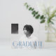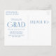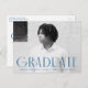 Tarjeta postal de invitación a una fiesta de graduación simple con la foto horizontal del graduado con "Graduado" que se muestra en letras art déco modernas en azul. Personalice la parte frontal de la invitación de la fiesta de graduación con foto agregando el nombre del graduado, la escuela y el año de graduación. La postal se invierte para mostrar su dirección de devolución y los detalles de la fiesta de graduación. ¡La invitación de tarjeta postal es perfecta tanto para graduados de secundaria como universitarios!