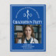 Esta invitación de tarjeta postal personalizada de graduación de la facultad de medicina osteopática azul real para un médico DO o osteópata cuenta con un símbolo de caduceo médico osteopático y la foto de tu universidad para la promoción de 2025. Personaliza con tu año de graduación en tipografía blanca para una excelente invitación de fotografía de graduado universitario personalizada.