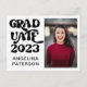 Postal De Invitación Fiesta de graduación Retro Script Foto Negro y Bla