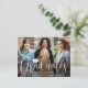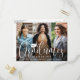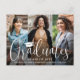 ¡Es una fiesta de graduación triple! Anuncia el logro de tres graduados e invita a familiares y amigos a celebrar con elegantes invitaciones conjuntas de tarjeta postal para la fiesta de graduación. Las imágenes y el texto de esta plantilla son fáciles de personalizar. Todos los colores y estilos de fuente se pueden cambiar con la herramienta de edición de Zazzle. Esta plantilla es una tarjeta de anuncio combinada en la parte delantera con la invitación a la fiesta de graduación en la parte trasera. El diseño moderno minimalista con superposición en blanco y negro presenta caligrafía con estilo de escritura a mano con un gorro de graduación, tipografía clásica elegante y un collage con 3 fotos de su elección, como fotos de último año o imágenes de la ceremonia de graduación. Estas tarjetas postales de invitación a la graduación son una forma elegante de anunciar una celebración especial para cualquier graduado triple, como hermanos, mejores amigos, primos, trillizos, compañeros de equipo, hermanos y hermanas, etc. ¡Felic