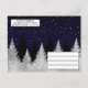 Celebra la temporada invernal de vacaciones con estas glamorosas y espléndidas postales de invitación del Partido de los Navidades. Cuentan con Navidades colgantes iluminados a mano, luces blancas con una cadena de plata. El fondo está formado por un cielo gradiente de color negro a azul marino con una falsa purpurina plateada impresa de nieve cayendo sobre pinos en purpurina plateado y negro. Este diseño moderno, elegante y de moda llenará a sus huéspedes de espíritu y alegría. ***NOTA DE DISEÑO IMPORTANTE: Para cualquier solicitud de diseño personalizado, como solicitudes de productos coincidentes, cambios de posición o cualquier otra solicitud de cambio, haga clic en el botón "CONTACTO" o envíe un correo electrónico al diseñador directamente a lafemme.art@gmail.com. Incluso puede enviarle un correo electrónico solicitando un diseño completamente personalizado y nuevo.