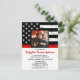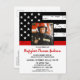 Celebra tu retiro e invita a amigos y familia a tu fiesta de retiro de bomberos con esta invitación a retiro de bomberos de la delgada línea roja - diseño de la bandera estadounidense en colores de la bandera de los bomberos , diseño angustiado . Personaliza con el nombre, el departamento de bomberos, la dirección y los detalles del rsvp. Esta invitación a la jubilación de bomberos se puede usar para graduarse como bombero, simplemente cambiar el texto al personalizar. Vea nuestra colección para encontrar regalos de retiro de bomberos, favores de partido y suministros. DERECHOS RESERVADOS © 2020 Judy Burrows, Black Dog Art - Todos los derechos reservados. Tarjeta postal de invitación del partido de retiro de bomberos de la línea roja delgada