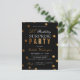 Clásica invitación a la fiesta sorpresa de cumpleaños con un falso confeti de purpurina de oro en negro con un diseño moderno de tipografía.