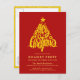 Árbol de Navidad Purpurina de oro en la tarjeta postal de invitación de la invitación de los Navidades de guión elegante rojo festivo. Invite a su familia, amigos y colegas a celebrar esta temporada navideña con esta postal festiva y moderna de Invitación. Perfecto para todas las ocasiones de celebración de vacaciones. Todos los textos están preorganizados para que puedas personalizarlos fácilmente y con tus propios detalles. ¡Felices Fiestas!