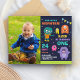 Sorprenda a sus huéspedes con esta encantadora invitación para una fiesta de cumpleaños que incluye adorables monstruos pequeños con una vibrante tipografía en un fondo azul oscuro. Simplemente agregue los detalles de su evento en esta plantilla fácil de usar y adorne esta tarjeta con la foto favorita de su hijo para convertirla en una invitación única.
