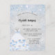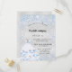 Para un elegante dulce 16, 16 cumpleaños. Un falso fondo metálico plateado. Decorada con un polvo azul falso purpurina y un vestido para un fiesta de temática invernal. Personalice y agregue un nombre, edad y detalles del fiesta. El nombre se escribe con un guión de estilo con letras a mano