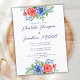 Postal De Invitación Floral azul blanco rojo 4 de julio Boda patriótico