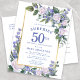 Postal De Invitación Floral azul de oro blanco 50 cumpleaños sorpresa