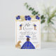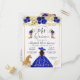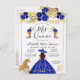 Postal De Invitación Floral Royal Blue Gold Charra Princesa Quinceanera
