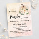 Un fondo dorado subió y degradado de color rosa oscuro, decorado con calabaza de color crema y flores. Personalice y agregue el nombre y los detalles del fiesta. Texto: Una calabaza está en camino.