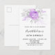 Postal De Invitación Flores púrpuras de cumpleaños plata elegante