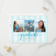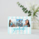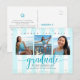 Asegúrate de que todos tus amigos y familiares puedan seguir celebrando el evento de graduación de tu graduado, independientemente de las circunstancias imprevistas actuales en el mundo. Envía esta impresionante, simple, moderna y femenina tarjeta postal personalizada de "Cambio de fecha" con tres fotos para un evento inolvidable. La tipografía turquesa brillante se superpone a un fondo a rayas azul turquesa y blanco con pequeños puntos de confeti turquesa y dorado. Agrega tres fotos de tu elección y personaliza el texto personalizado con el nombre de tu graduado, año de graduación, nombre de la escuela y nueva información de fecha. Tu mensaje personalizado, un icono de gorra de graduación azul turquesa y tu dirección de devolución adornan la parte posterior. También están disponibles invitaciones, tarjetas de agradecimiento, tapas de gorra, servilletas, platos y otros artículos de graduación en esta colección moderna y elegante. Asegúrate de que su celebración especial siga siendo tan festiva como se planeó originalmente.