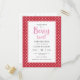 ¡Un bebe dulce está en camino! Este diseño presenta un fondo dulce de semillas de fresa que parecen puntos de polka y tipografía rosa linda para la frase Berry Sweet. Personalizar con su propio texto. Esta invitación minimalista, clásica y dulce a la ducha de bebé está especialmente diseñada en una postal por un precio económico y sería perfecta en cualquier momento de primavera a verano.