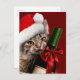Postal De Invitación Gato de Navidad con botella de vino