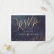 Diseño de caligrafía con letras de oro y puntos dorados en el fondo del agua del cielo marino oscuro, efecto purpurina de oro metálico de imitación, moderno, moda, elegante y elegante, perfecto para bodas vintage o bodas de invierno por la noche. Personalizado tu propia postal RSVP para tu juego de invitación a la boda. Vea todas las piezas que coinciden en esta colección de caligrafía de purpurina dorado Glam night a continuación.