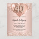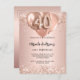Por un elegante cumpleaños 40. Un fondo dorado rosa. Decorado con oro rosa, purpurina falso rosa, chispas y globos. Personalice y agregue un nombre y detalles del fiesta. El nombre está escrito con un guión de estilo con letras a mano, número 40 con fuentes de estilo globo.