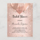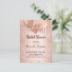 Para una elegante ducha de novia. Un rosa de oro falso de aspecto metálico. Decorada con oro rosa, goteos en purpurina de imitación rosada, pinturas y globos. Personalice y agregue el nombre de la novia para ser y los detalles del fiesta. El nombre y el texto: Bridal Shower están escritas con un guión de estilo con letras a mano. Parte posterior: fondo dorado rosa, puntos purpurinas, diseño postal. Sugerencia: Si no desea que se vea como una postal, haga clic en personalizar, vaya a la parte posterior y quite el separador y el sello postal.