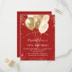 Para una elegante fiesta de cumpleaños número 18 (o cualquier edad). Un fondo rojo de moda. Decorada con purpurinas dorados, chispas y globos. Personalice y agregue un nombre, edad y detalles del fiesta. El nombre se escribe con un guión de estilo con letras a mano