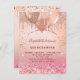 Para una elegante Quinceañera, 15 años. Fondo de degradado dorado y rosa subió. Decorada con oro rosa, goteos en purpurina de imitación rosada, pinturas y globos. Personalice y agregue un nombre, edad/texto y detalles del fiesta. El nombre se escribe con un guión de estilo con letras a mano. Parte posterior: gradiente rosa dorado subió, diseño postal. Sugerencia: Si no desea que se vea como una postal, haga clic en personalizar, vaya a la parte posterior y quite el separador y el sello postal.