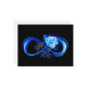 Luminous infinity symbol with glowing, beautiful, lushly blooming rose made of blue flames on black background.