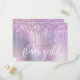 Este diseño de invitación moderno cuenta con una textura holográfica de purpurina morada que gotea y una fuente de caligrafía elegante.