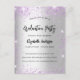 Una moderna y elegante invitación a la fiesta de graduación. Un fondo falso plateado con purpurinas falsos violetas, chispas. Personalice y agregue el nombre y los detalles del fiesta.