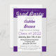 Una invitación femenina audaz con mucho espíritu escolar. Esta invitación a graduarse de Fiesta graduado Purple Silver audaz es una manera elegante de honrar a tu graduado de secundaria o universitario. Presenta colores plateados y morados acentuados con un tipo de letra de escritura ondulada.