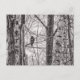 Fotografía en blanco y negro de un halcón encaramado en una rama de un grupo de árboles. Derechos reservados ©2024 Kimberly J Tilley. zazzle.com/store/developingnature