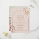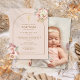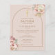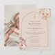Hermosas acuarelas de hierba de pampas floral y elegante arco enmarcan los detalles de su bautizo o presentación en tipografía elegante sobre un suave fondo rosa y una foto especial en el reverso. Diseñado por Thisisnotme©