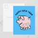 Ilustración de dibujos animados divertida de un cerdito rosa sonriendo (ilustración n°3) sobre fondo transparente con textos personalizables: FELIZ AÑO NUEVO y 2019. Puede cambiar fácilmente el texto (fuente, tamaño, color y posición) y el color de fondo haciendo clic en el botón personalizar. Diseño en tarjeta postal vertical de felicitación con fondo azul. Disponible con otras ilustraciones de dibujos animados divertidos. Tarjeta de felicitación, ropa, productos para el hogar, productos de oficina y más... Perfecto para el Año Nuevo Chino del Cerdo o cumpleaños (personas nacidas en el año del Cerdo). ---- -- "El Cerdo (豬) es el duodécimo y último signo de las Ramas Terrestres (亥). En el ciclo sexagenario continuo, cada duodécimo año corresponde a Hai, y se le llama comúnmente "el año del Cerdo" (豬年). Hay cinco tipos de cerdos, nombrados según los elementos chinos. En orden, son: Metal, Agua, Madera, Fuego y Tierra.