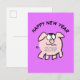 Ilustración de dibujos animados divertidos de un pequeño cerdo rosa (ilustración n°2) sobre fondo transparente con textos personalizables: FELIZ AÑO NUEVO y 2019. Puede cambiar fácilmente el texto (fuente, tamaño, color y posición) y el color de fondo haciendo clic en el botón personalizar. Diseño en tarjeta postal vertical de felicitación con fondo malva. Disponible con otras ilustraciones divertidas de dibujos animados. Tarjeta de felicitación, ropa, productos para el hogar, productos de oficina y más... Perfecto para el Año Nuevo Chino del Cerdo 2019 o cumpleaños (personas nacidas en el año del Cerdo). -- "El Cerdo (豬) es el duodécimo y último signo de las Ramas Terrestres (亥). En el ciclo sexagenario continuo, cada duodécimo año corresponde a Hai, y se le llama comúnmente "el Año del Cerdo" (豬年). Hay cinco tipos de cerdos, nombrados según los elementos chinos. En orden, son: Metal, Agua, Madera, Fuego y Tierra.
