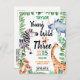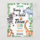 Postal De Invitación Jóvenes salvajes y tres animales de safari cumplen