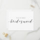 Tarjetas de presentación para la fiesta nupcial "Will You Be My Bridesmaid" diseñadas por un personalizado con un diseño rústico moderno en blanco y negro.