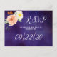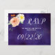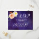 Esta colección presenta un fondo azul oscuro de medianoche con tipografía de moda y acentos florales. Personalice fácilmente el diseño con su texto para hacer que estas postales RSVP sean totalmente únicas en su día especial.