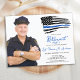 Invitaciones delgadas a la Jubilación de la Policía de la Línea Azul o invitaciones al Partido de Graduación de la Policía. Celebre años de servicio dedicado, o celebre su nuevo graduado de la academia de policía, e invite a amigos y familiares a su fiesta de aplicación de la ley con esta Invitación a la Retirada de la Policía con Bandera Azul delgada y invitaciones a graduación de la academia de policía - diseño de la bandera norteamericana en colores de la bandera de la policía, diseño angustiado. Esta invitación a la jubilación de oficiales de policía también es perfecta para invitaciones a graduarse en la academia de policía, cambiar de lugar de personalización. Vea nuestra colección para ver regalos de retiro de la policía, regalos de graduación de la policía, favores del partido y suministros. DERECHOS RESERVADOS © 2021 Judy Burrows, Black Dog Art - Todos los derechos reservados. La policía delgada línea azul personaliza la tarjeta postal de invitación a retiro fotográfico