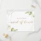 Tarjetas de invitación a la boda "Will You Be My Maid of Honor" diseñadas por un personalizado, que presentan una vegetación acuática con diseño de caligrafía de Relieve metalizado dorado.