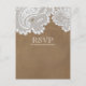 Tarjeta de respuesta de boda elegante rústica de encaje blanco y marrón. Artículos coincidentes disponibles.