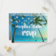 La tarjeta postal de respuesta de la recepción de la boda de destino de la playa tropical cuenta con palmeras románticas y luces de cadenas. Proporciona espacio para incluir opciones de comida o preferencias. Fácil de personalizar con sus propios nombres e información. Fotografía y diseño de T.K. Goforth, todos los derechos reservados. Asegúrese de revisar los artículos coincidentes en mi Colección de Bodas de Playa Tropical y Luces de Cadenas en mi tienda Zazzle: