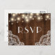 Postal De Invitación Luces de Cuerda de Madera Rústica y Encaje | Tarje