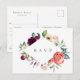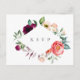 Elegante estilo bohemio con marco de diamante floral en acuarela en hermosos tonos de verde, violeta, melocotón y rosa, respuesta de boda con tarjeta postal de solicitud de canción. Personaliza el texto, personaliza el estilo de fuente, color y tamaño.