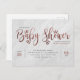 Elegante invitación a la ducha de bebé con un rosa de moda falso de oro contra mármol blanco que muestra tus detalles con una elegante tipografía minimalista.