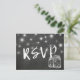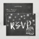 Plantillas de Tarjeta Postal de Respuesta de Boda - Elegante Mason Jar & Luces de Cuerda Vintage con Fondo de Pizarra Negra Grunge.