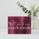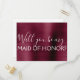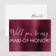Burgundy Cranberry Faux Metallic Brushless Steless Metalizado Elegant ¿Serás mi empleada de honor? Postal. Esta tarjeta Marsala Purple Will eres mi criada de honor es parte de la colección de Bodas de Borgoña. Póngase en contacto con el diseñador si desea que los elementos coincidan de forma personalizada.