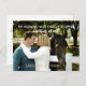 Un humorístico diseño de invitación a la fiesta de compromiso fotográfico desde la perspectiva de un caballo. Hemos agregado la frase "Mis seres humanos finalmente han dejado de masticar" a las cartas, pero puedes, por supuesto, cambiar la frase. Envíe estas postales a todos sus invitados; simplemente agregue su propia foto y nombres al frente, y añada los detalles de su fiesta al dorso de la tarjeta. Puede cambiar el tipo de letra, el tamaño de la fuente y el color de todos los elementos de texto.