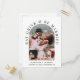 Papel de moda o boda privado invitación y postal de invitación a la recepción con la foto del día de la boda en un marco de arco, "Come Beat & Be Casried" en elegante tipografía de la Seria y tus nombres, fecha de recepción y ubicación. En la parte posterior, personalice su invitación y agregue sus nombres en un script parecido a una firma.
