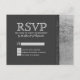 Elegante y moda moderna imitación de Relieve metalizado negro impreso, purpurina y papel, tarjeta RSVP. Diseño muy clásico y sofisticado para cualquier evento. Todas las fotos impresas.