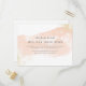 Moda minimalista invitación a la ducha de novia con un lavado de color rosa rubor contra un fondo blanco con polvo falso purpurina de oro en las esquinas con una tipografía elegante.