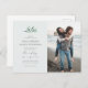 Este minimalista diseño boda es perfecto para esa pareja moderna que busca algo único. Esta invitación postal incluye una rama acuarela con una preciosa tipografía moderna debajo y una foto de su propio personalizado en el lado derecho contra un fondo azul pastel. En la parte posterior, un lavabo de color verde acuático completa perfectamente la parte delantera. Haga clic en el botón azul "personalizar" para añadir sus propios detalles y ver cómo su diseño cobra vida delante de usted!